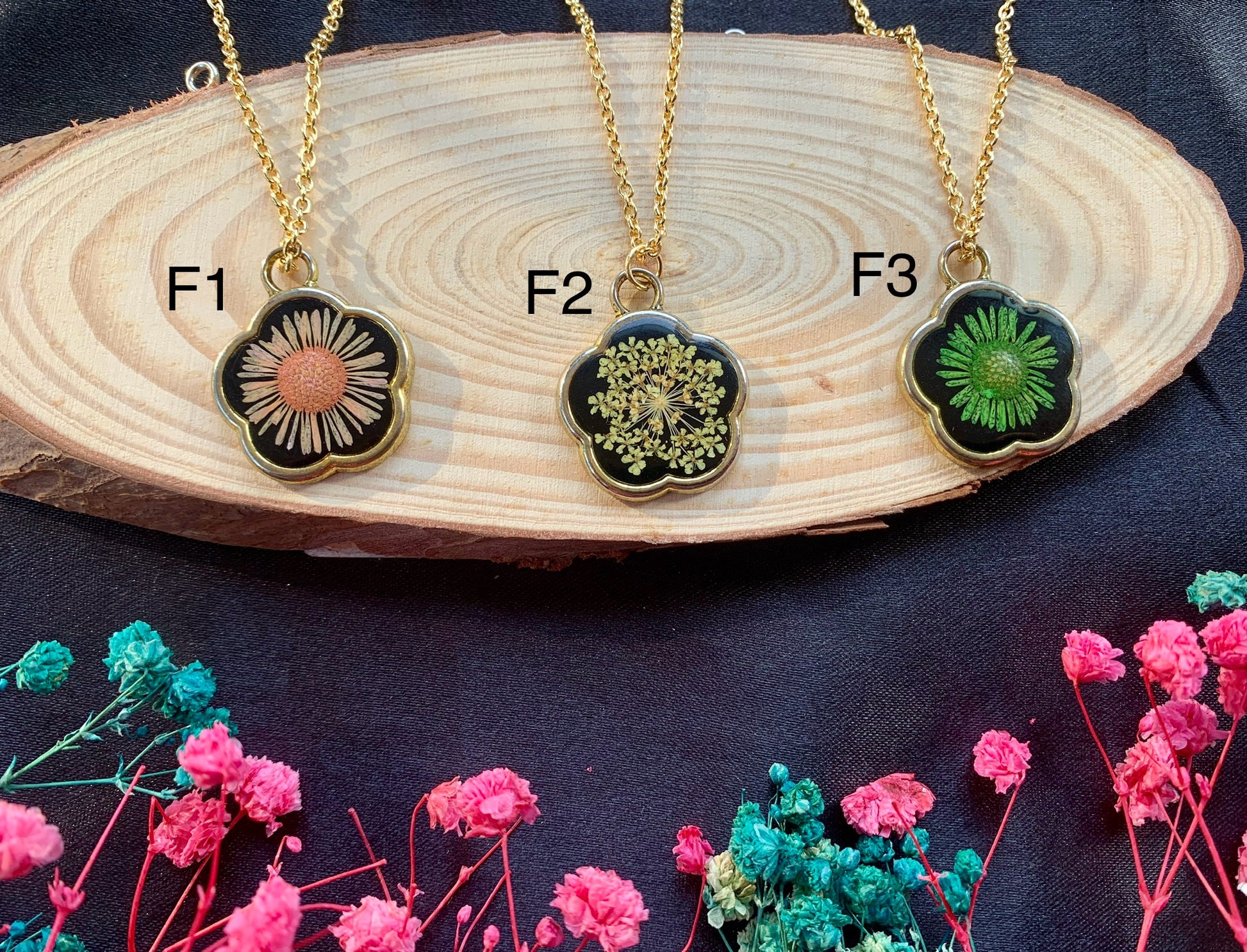 "Each piece is uniquely handcrafted with real flowers, making every jewelry item one of a kind. Slight variations in color and design may occur, adding to its natural beauty."