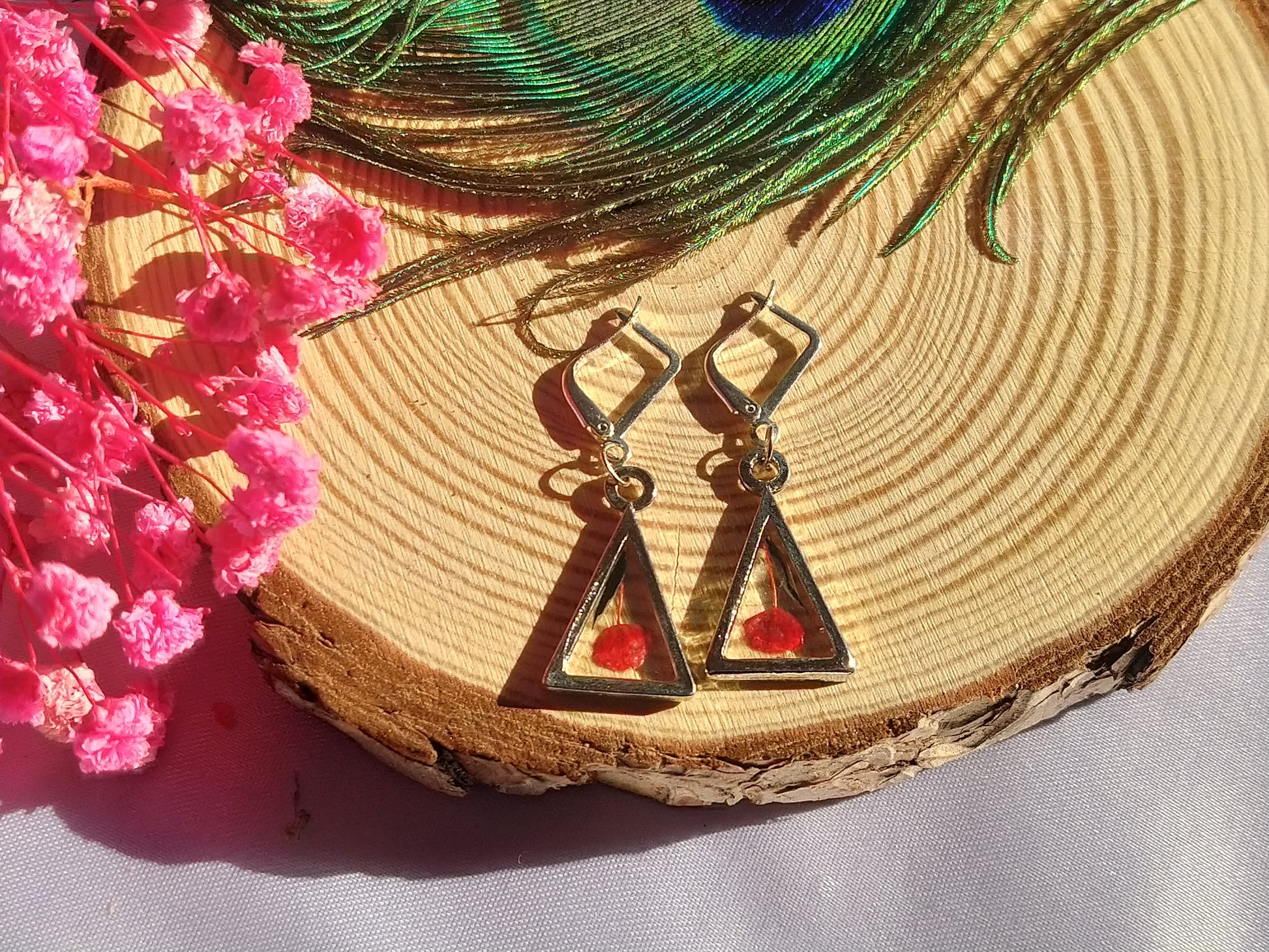 Ear hooks are coated with sterling silver. Feather weight ear-hugs
