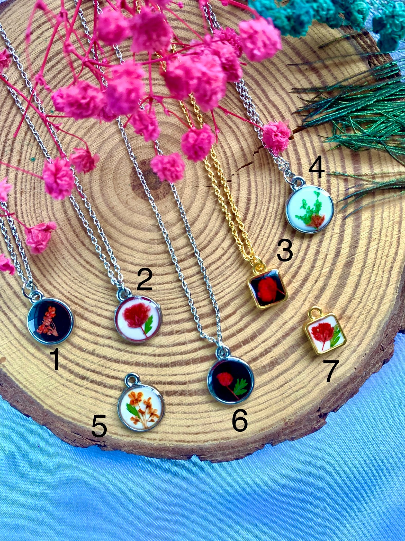 "Each piece is uniquely handcrafted with real flowers, making every jewelry item one of a kind. Slight variations in color and design may occur, adding to its natural beauty."