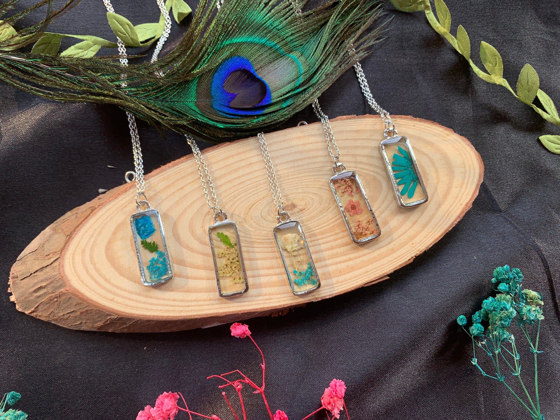 "Each piece is uniquely handcrafted with real flowers, making every jewelry item one of a kind. Slight variations in color and design may occur, adding to its natural beauty."
